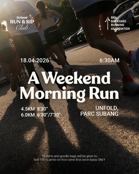 Sesi Run & Sip Club by So Good bersama Backyard Running Association akan berlangsung pada 18 April 2026 di Unfold Café, PARC, Subang Jaya. Sesi ini menawarkan dua laluan berbeza mengikut tahap – daripada pemula hingga pertengahan dan berpengalaman – menjadikannya inklusif untuk semua peserta. Hadirin juga berpeluang merasai rangkaian susu berasaskan tumbuhan So Good, dengan pilihan untuk menikmatinya dalam minuman selepas larian yang disediakan di Unfold Café.